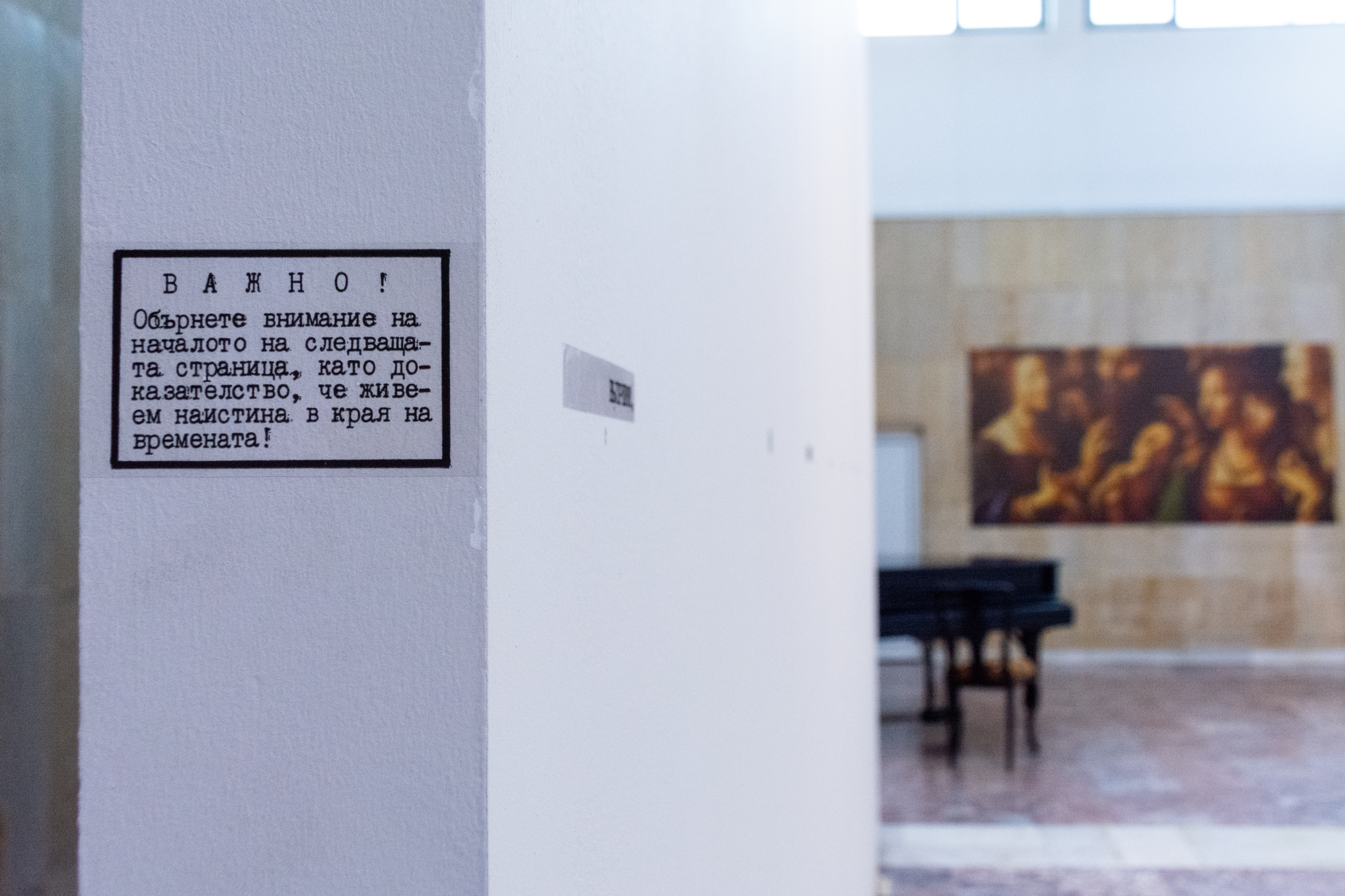 The visual narrative is derived from a speech in the public space. The Imagery in the booklet and the HI-AI Diversion chain spatial installation is developed by generative algorithms using text prompts from an anonymous human-made prophesy. Statements as “God does not sin and does not joke” are found in an original booklet “The Reason is Speaking”, and several other flyers. “The Reason is Speaking” is an informational bulletin: no authorship, self-published, typewritten in Bulgarian, xeroxed, and reproduced in black and white copies. It tells us about God’s testimonies and the Devil’s instruments and it claims telling the truth about our existence. “The Reason is Speaking” is a warning of the upcoming “end of times” – as it says. The final appeal is to keep spreading “the truth”. The bulletins and the flyers are found across Sofia (BG) in the period 2018-2023: distributed for free and relatively regular as in analog social media sharing realm.