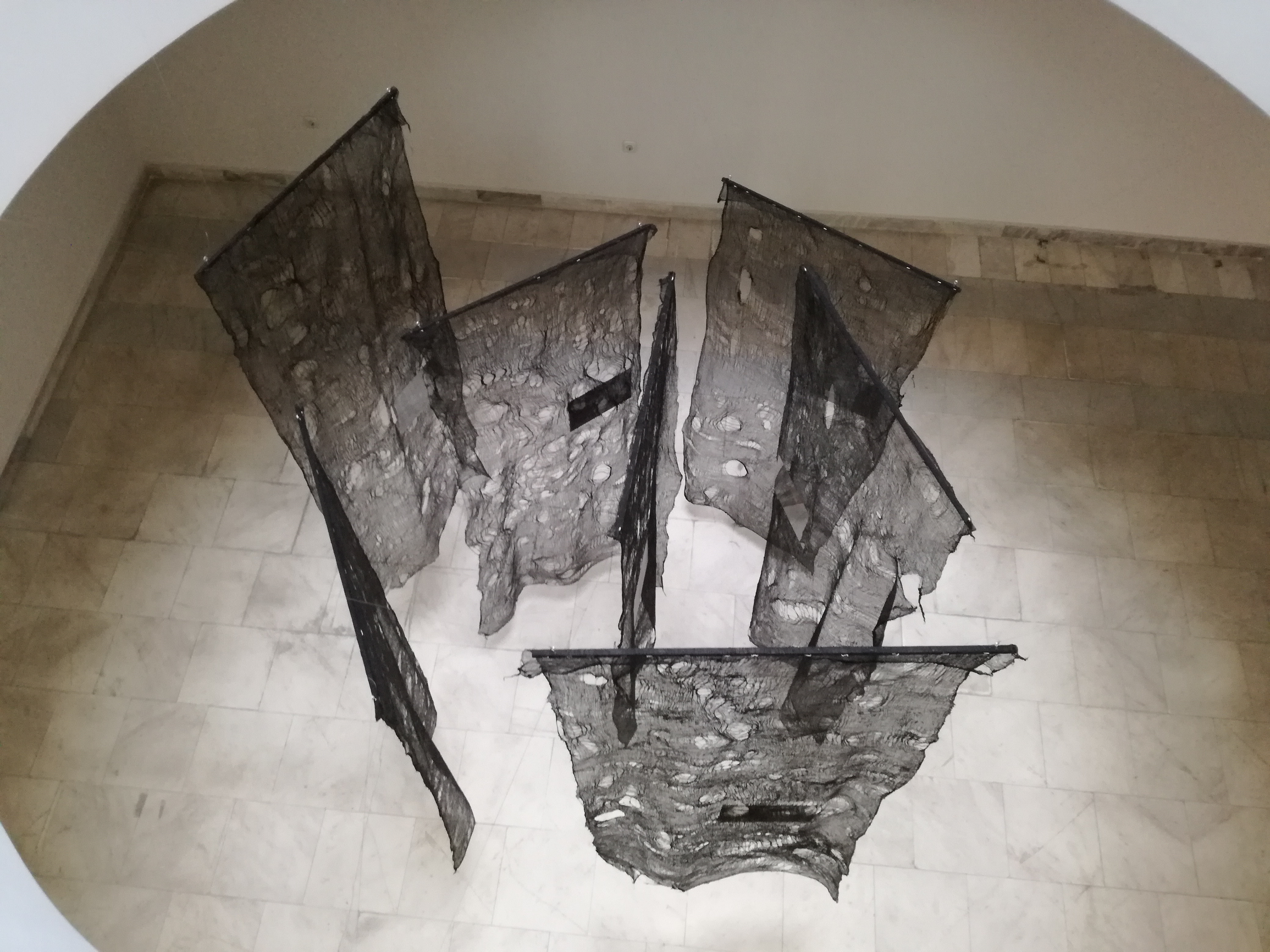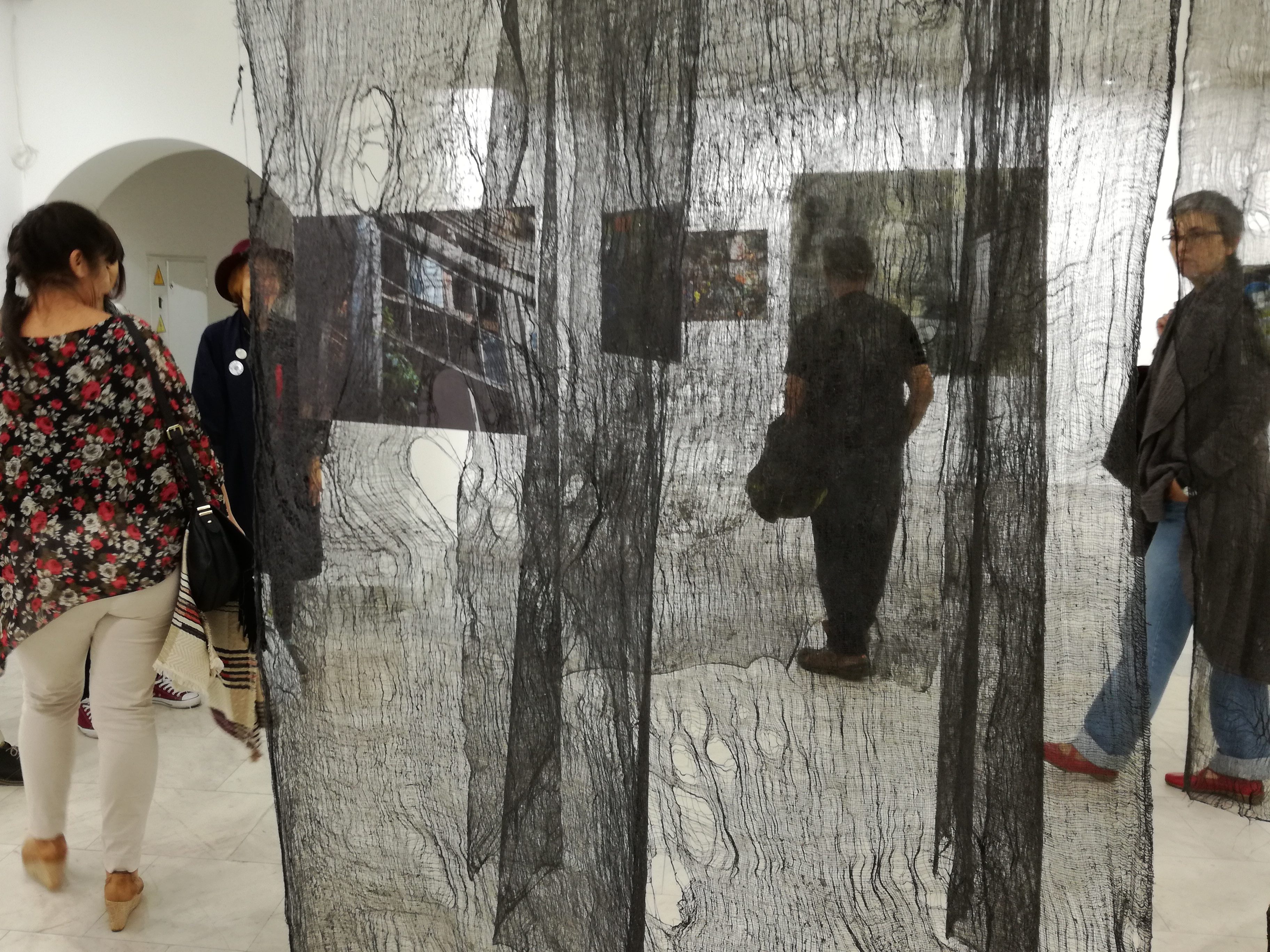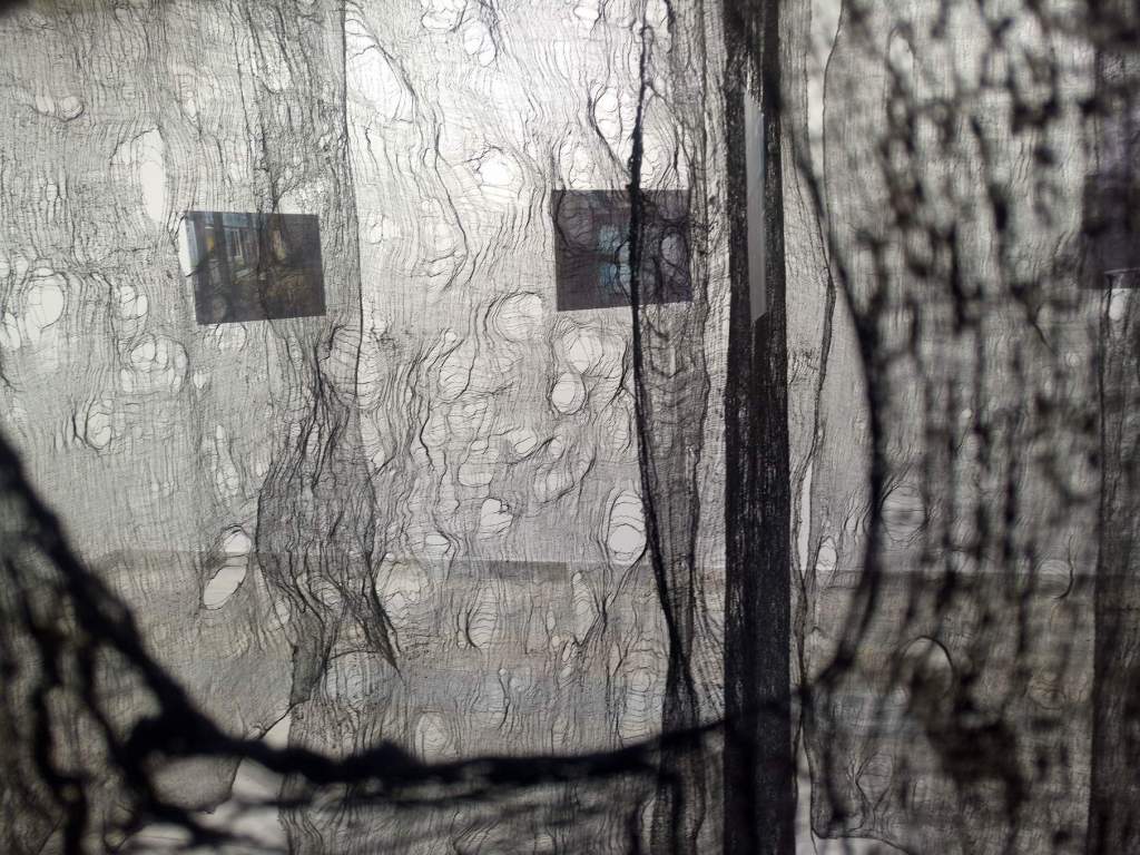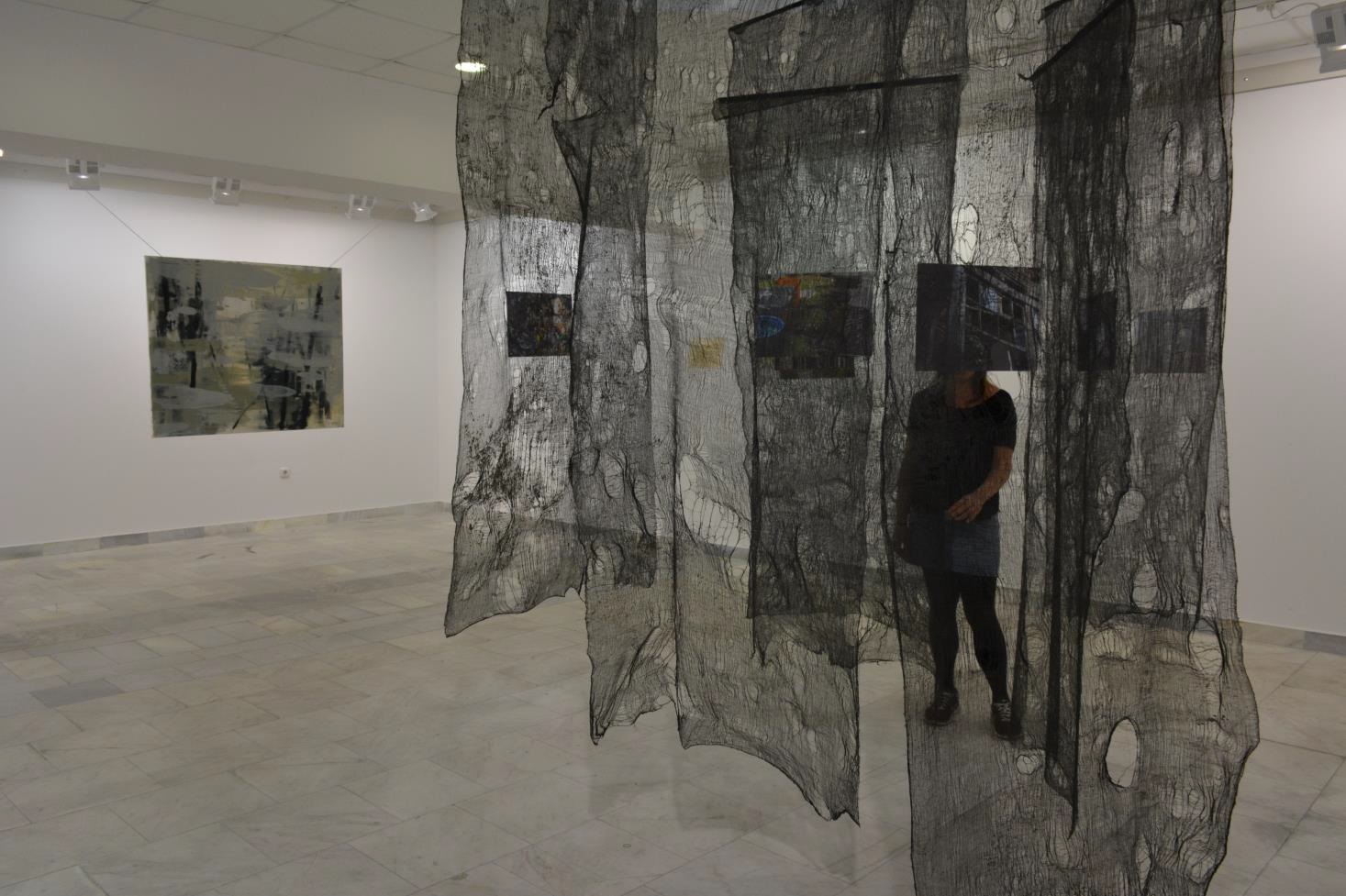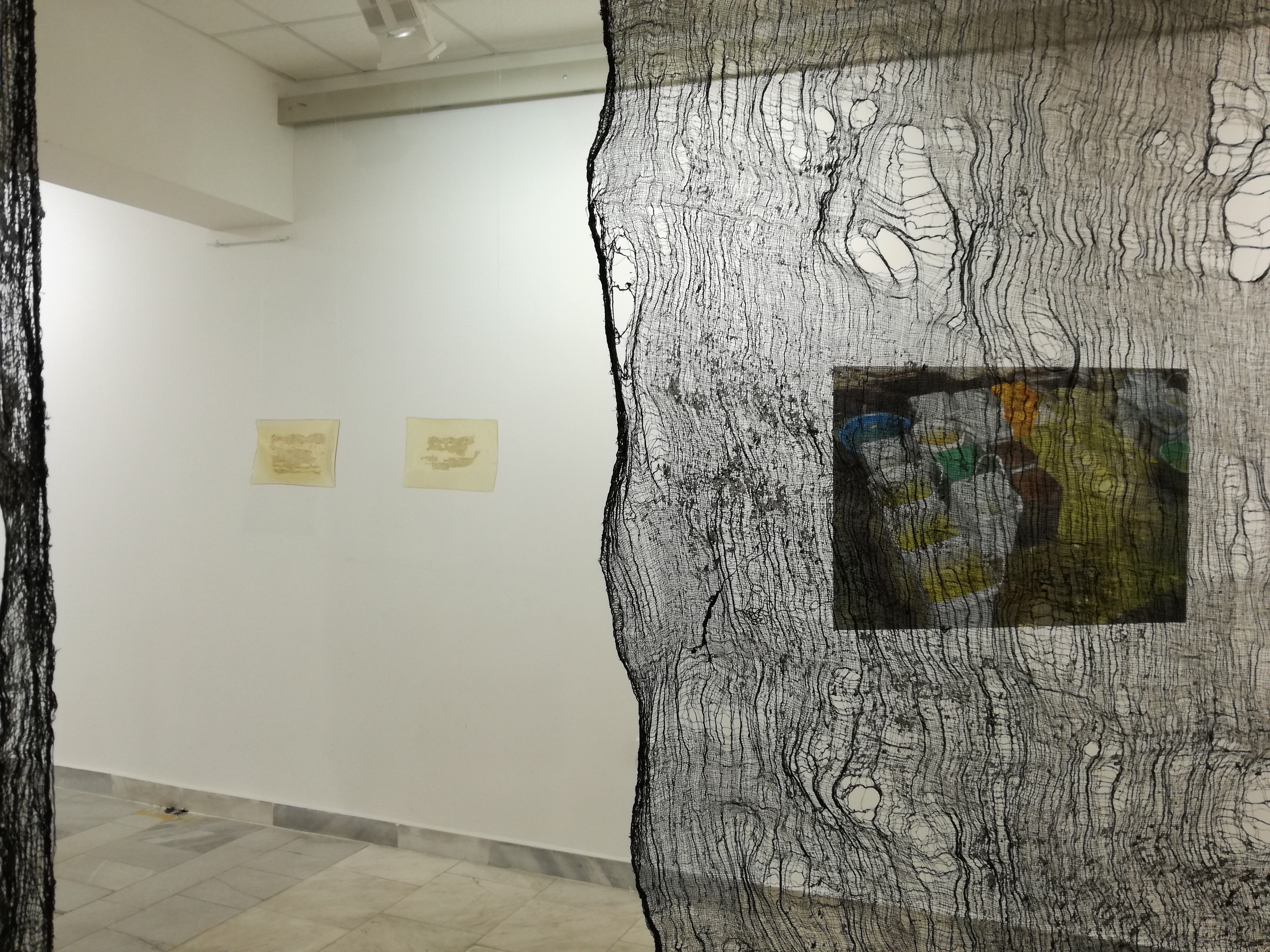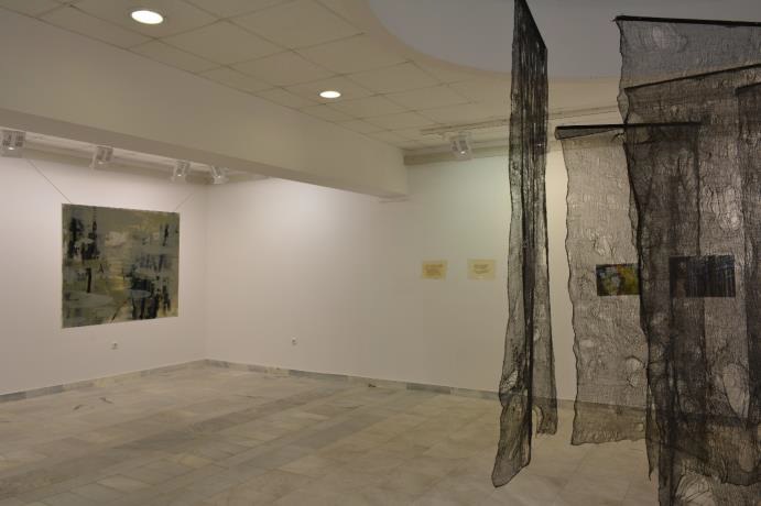 Descriptions: installation of manipulated fibers and textiles (3 x 3 x 3 m); Documentary photographs on plexiglass (20 x 30 сm each, in series of eight); Sculptural objects (20/30 cm each, two pieces, epoxy resin and fibers); Painting piece (acrylics on canvas, 100 x 150 сm, 2017. / Exhibition views: “Presence / Absence – Objective / Subjective” 2017, Debut Expo Hall – Rafael Mihailov Exhibition Halls, Veliko Tarnovo